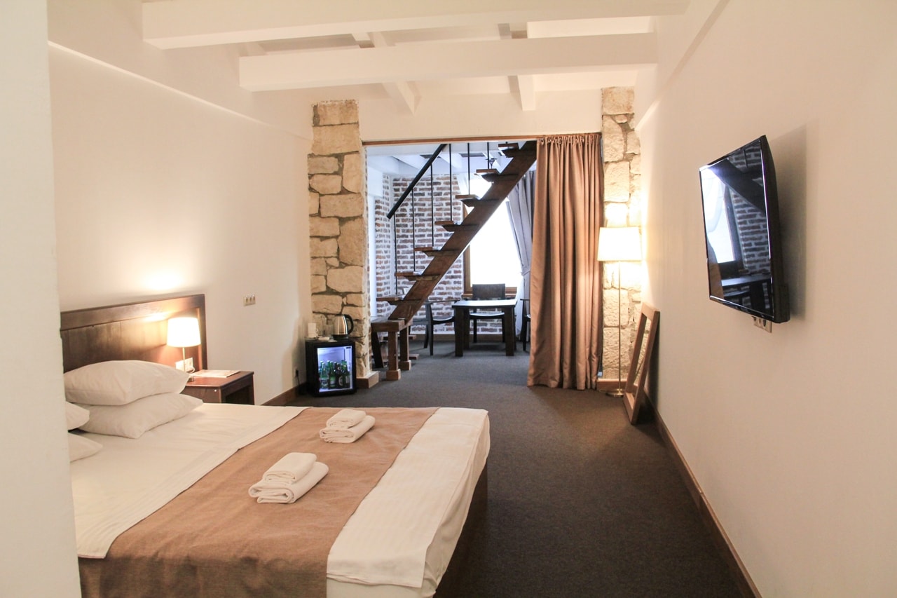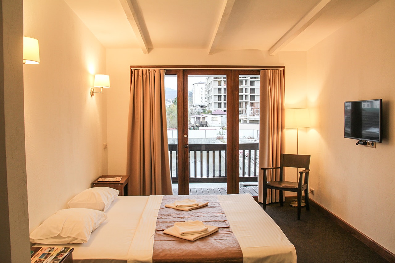 Качество номеров и обслуживания выделяет этот отель среди других предложений в Сухуме. Половина номеров имеют лоджию с видом на море, и вы можете засыпать под шум прибоя, а пить утренний кофе под крик чаек, вдыхая ароматы тропических растений или морского бриза.