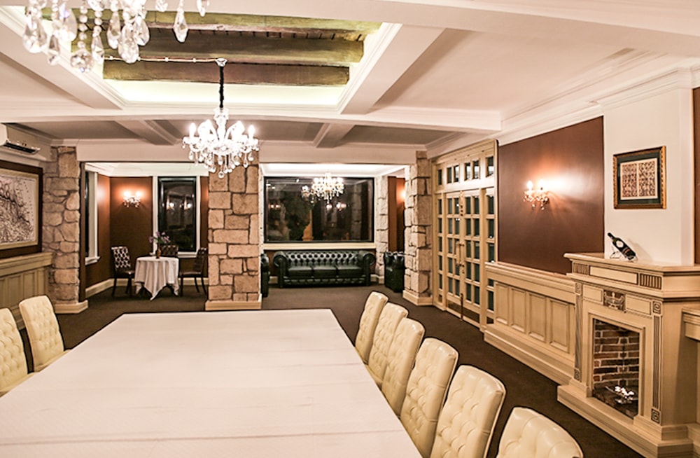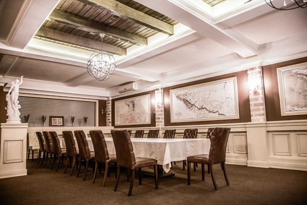 Здесь можно заказать проведение банкета, а также любого другого мероприятия, обсудив с сотрудниками все детали. В 2х залах комфортно разместится большое количество гостей, а блюда различных кухонь мира удовлетворят любой вкус. Летняя площадка ресторана в холодное время имеет дополнительный обогрев.