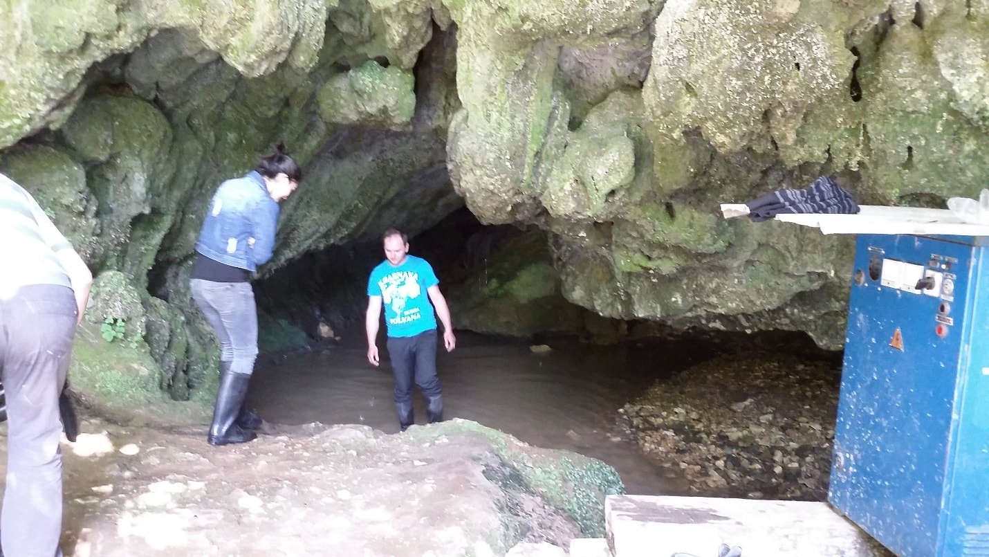 Следующий объект – Отапская пещера или пещера Абрскила, несомненно достойный для посещения объект, с богато подсвеченными каменными изваяниями, о каждом из которых юный гид рассказывает занимательную легенду, и самое необычное в этом подземном путешествии то, что приходится идти по колено в воде шустрой подземной реки. Хорошо, что на входе в пещеру имеется богатая коллекция резиновых сапог всех размеров