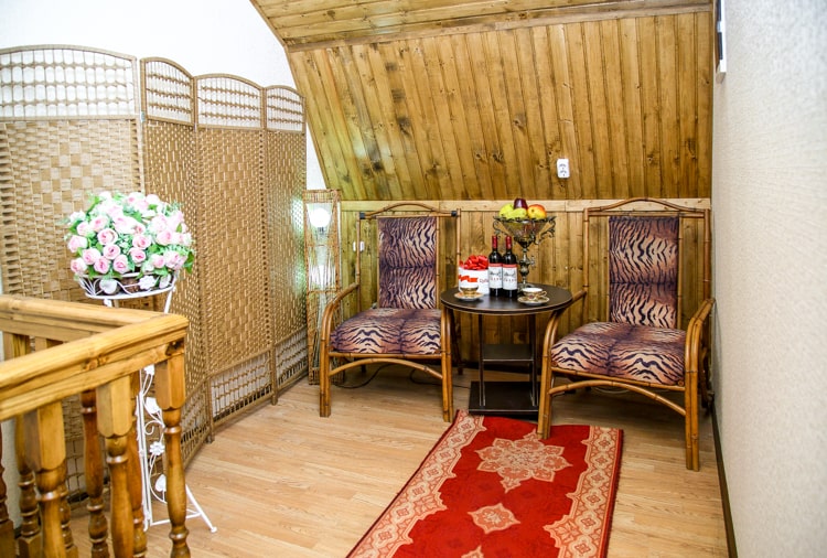 В гостинице можно отдохнуть не только в номере, но и расположиться в креслах на уютной террасе во дворе. Навес укроет от солнца, а за столиками можно пообщаться с друзьями за бокалом вина.